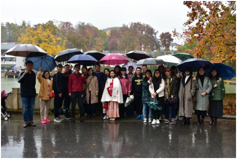 同学们走进古村,品尝了村里的特色食品,参观了指南村有名的天池、古井、古树,并深入村中了解了古村的文化和发展现状。同时每个人都被村中的秋景深深所吸引,银杏、枫叶、小溪都彰显着古村的魅力。