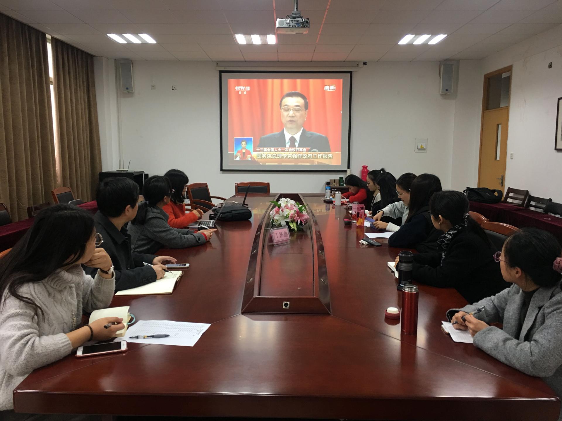 3月5日上午,十三届全国人大一次会议在北京人民大会堂隆重召开,学院组织广大师生在3号楼211会议室集中观看开幕式盛况,认真聆听李克强总理所作的政府工作报告,观看现场秩序井然。开幕式结束后,师生们争相畅谈感想与体会。