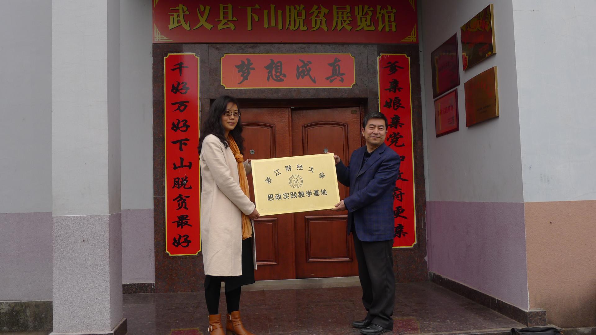 一行的到来表示热烈欢迎,对我校思想政治理论课实践教学基地落户武义表示热烈祝贺。她简要介绍了武义下山脱贫的基本情况,并在揭牌仪式上说,多年来,武义下山脱贫工作一直得到政府和社会的积极关心和大力支持,为不辜负各界的关心和支持,希望双方以共建实践教学基地为契机,加强交流,促进合作,推动共同发展。