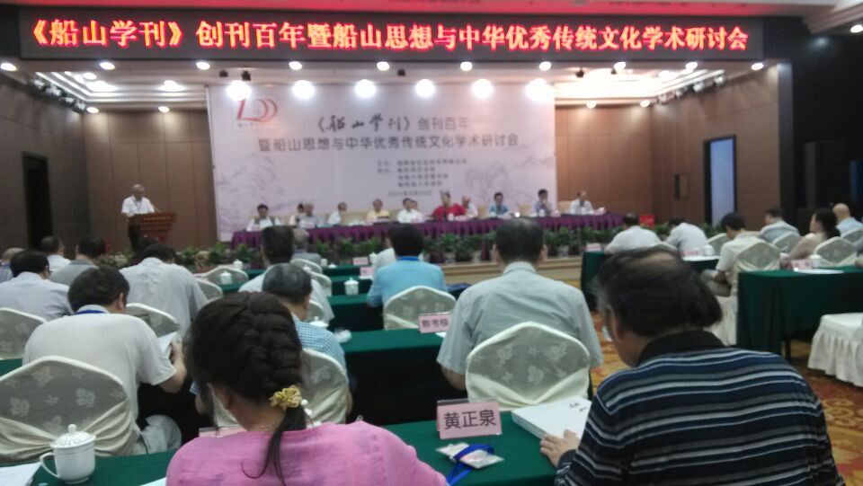 《船山学刊》创刊百年暨船山思想与中华优秀传统文化学术研讨会于 2015 年 8 月 20 日 在长沙召开。武汉大学国学院院长郭齐勇、中国伦理学会副会长唐凯麟、北京大学哲学系教授张学智、南京大学哲学系教授杨明、中国人民大学哲学系教授肖群忠等100余名专家学者就船山研究和《船山学刊》发展进行了深入探讨。我部彭传华副教授应邀参加了会议,为大会提交了论文并作了分会场的论文宣读,得到了不少专家学者的好评。