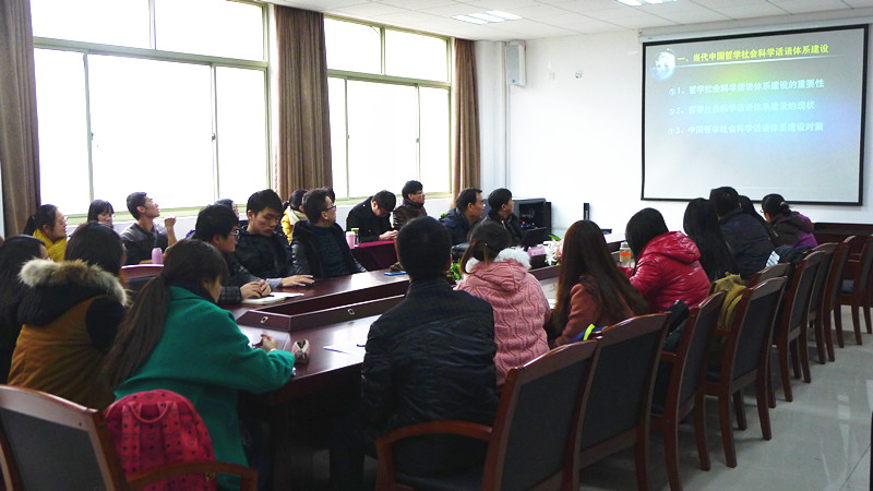 思政部3-211会议室却热闹非凡、温暖如春,这里正在进行一场题为“当代中国哲学社会科学话语体系建设——兼谈当代青年哲学社会科学话语体系建设”的专题讲座。给大家做讲座的是浙江理工大学一楼一凤