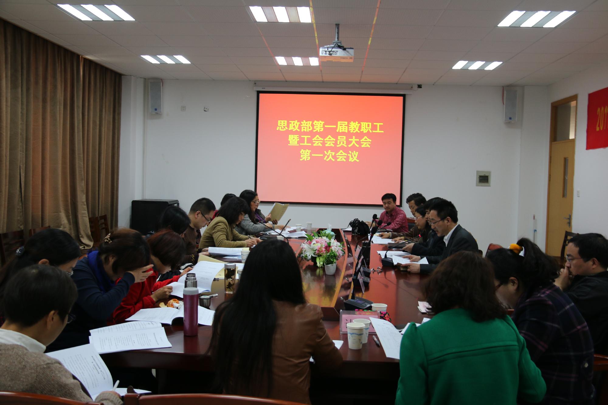思政部第一届教职工暨工会会员大会第一次会议在3号学院楼211会议室隆重举行。学院党政领导和全体教职工出席大会,会议由学院党总支副书记何历宇主持。
