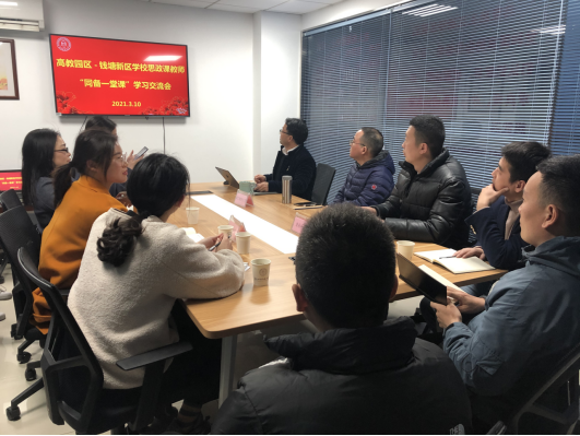 组织召开了“高教园区-钱塘新区学校思政课教师‘同备一堂课’学习交流会”。本次交流会邀请到了来自钱塘新区文海中学、景苑中学、启源中学包括校领导、德育处主任以及任课教师代表等在内的八位教师莅校交流,一楼一凤