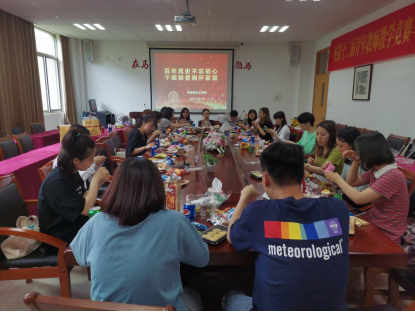 在3号楼211以“百年党史不忘初心,千载粽香胸怀家国”为主题,举办了一场别开生面的端午党团建活动,参加活动的有辅导员王瑜老师及全体在校研究生。