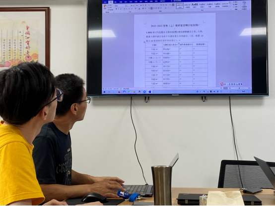 马克思主义基本原理教研室于2021年9月7日,召开新学期第一次教研室会议,本次会议围绕新学期教研室工作计划安排以及新教材学习、相关教学文件包括教学大纲、教案、课件、试题库修订完善等问题进行了集体讨论,并综合教研室各位教师的意见进行了详细分工,提出具体实施举措。