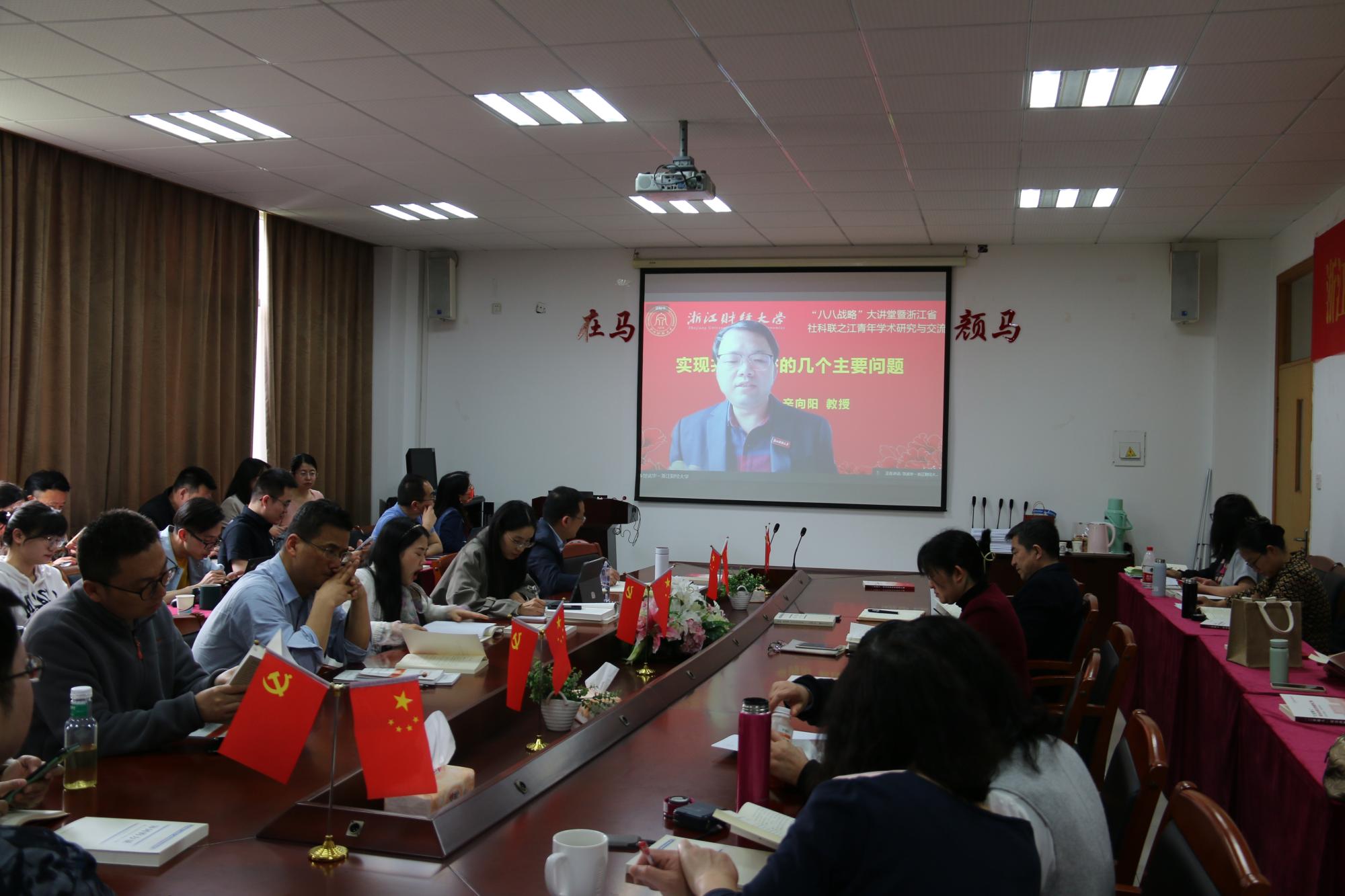 师生作题为《关于共同富裕的四个前沿问题》的学术报告,报告采用“线上+线下”相结合的方式进行,主会场设在一楼一凤