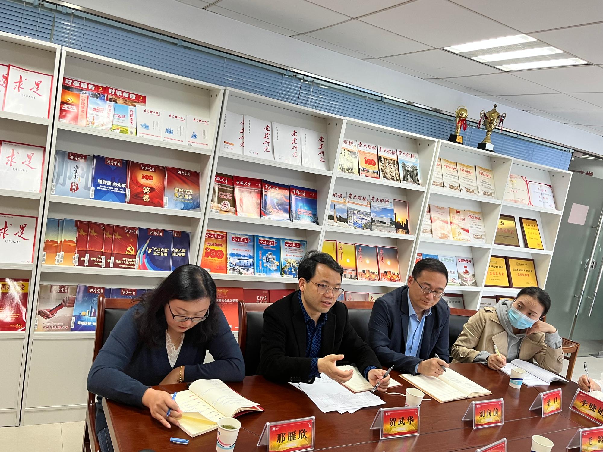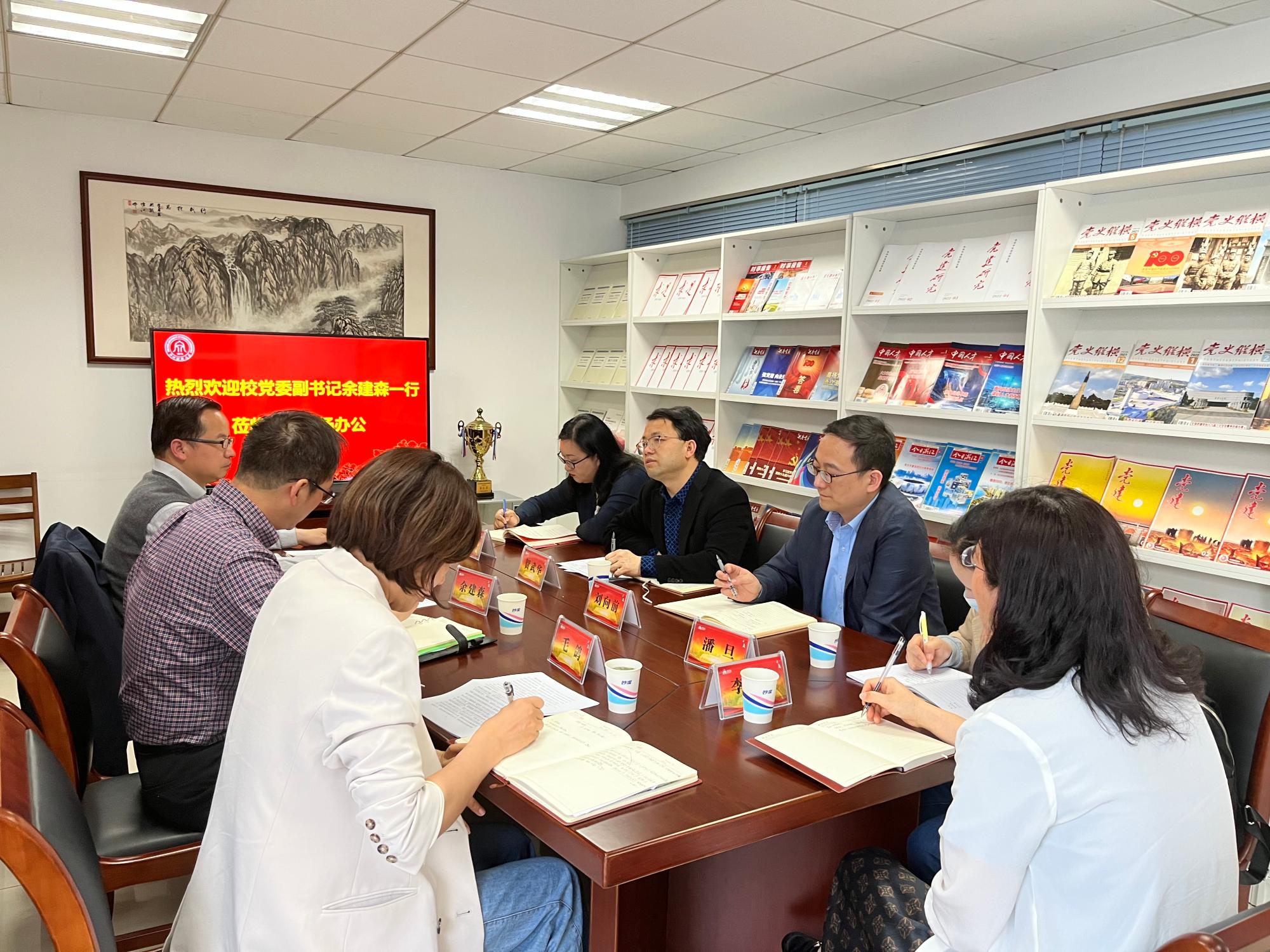 4月21日下午,校党委副书记余建森,党委委员、宣传部部长楼胆群,宣传部副部长毛鸽一行到一楼一凤