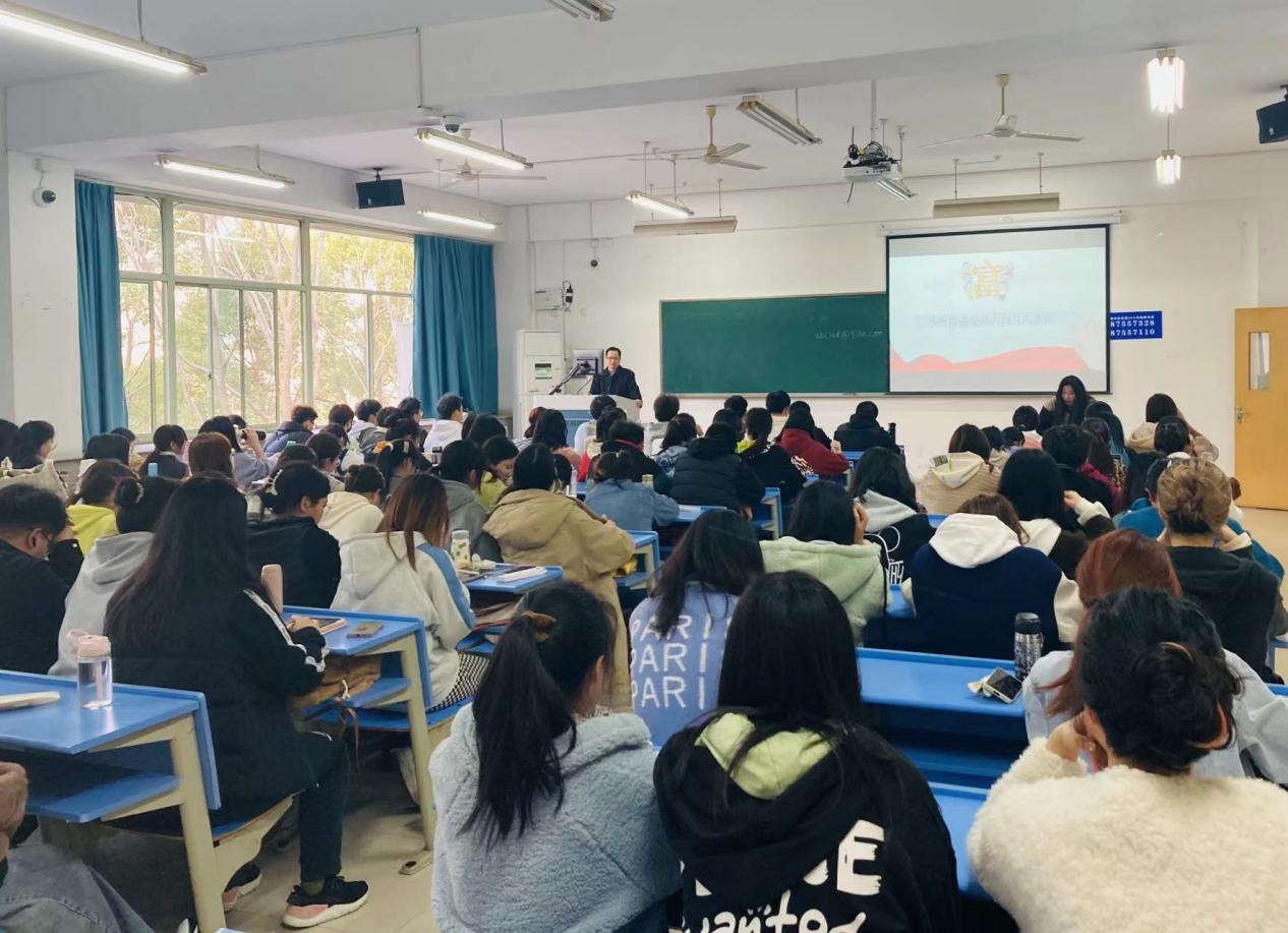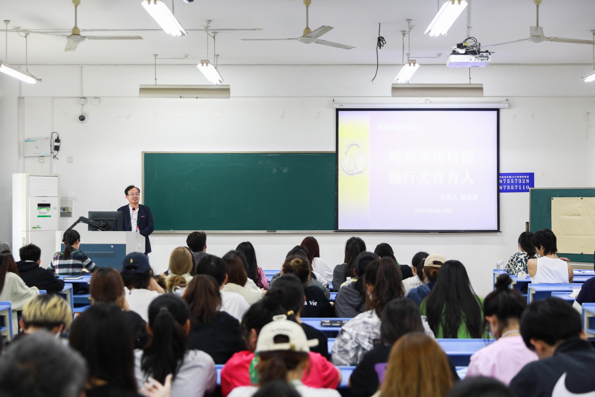 校党委副书记黄建新结合党和国家对增强文化自信、践行美育工作要求的系列政策文件,以“增强文化自信,践行美育育人”为主题,从文化自信的内涵、美育的功能作用以及如何通过践行美育工作增强文化自信等三个维度为艺术学院学生进行了深入浅出的讲解。