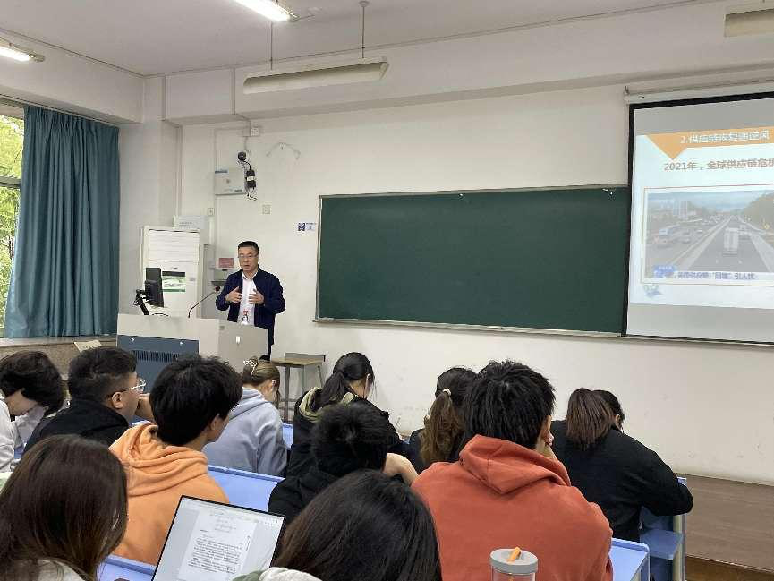 校党委委员、副校长徐晓东围绕“艰难复苏中的世界经济”这一主题,从俄乌战争、新冠肺炎、供给与需求等方面分析了世界经济在复苏进程中出现的多方面结构性失衡,为经济学院学生详细阐释了全球供应链危机问题以及世界经济艰难复苏的原因。