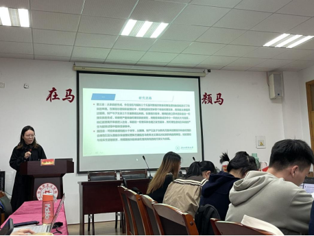 预答辩分为研究生学位论文PPT展示汇报、答辩老师点评提问、学生回答、答辩老师总结点评四个环节进行。20级同学从研究背景、论文框架、研究方法、研究结论以及创新点等方面进行了详细阐述。
