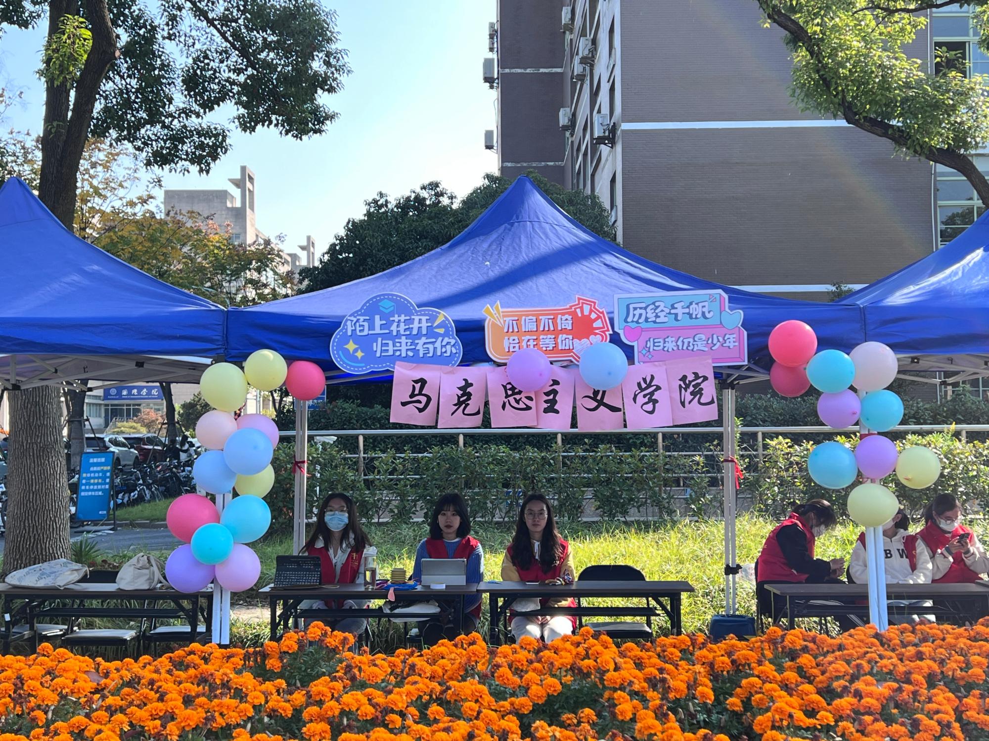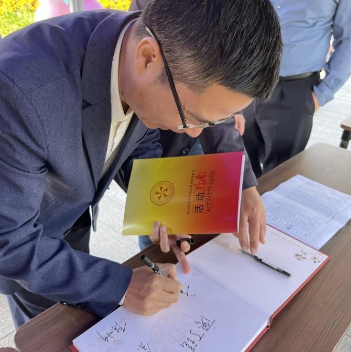 的摊位上签名留念并领取了学院精心准备的画册和纪念品,校友们都为马院在一年年中取得的辉煌成就感到十分骄傲,为学院得到的长足发展感到由衷的喜悦。签到完毕后校友们在志愿者的带领下去往普华大剧院参加2022年秩年返校纪念大会暨学业成礼仪式。