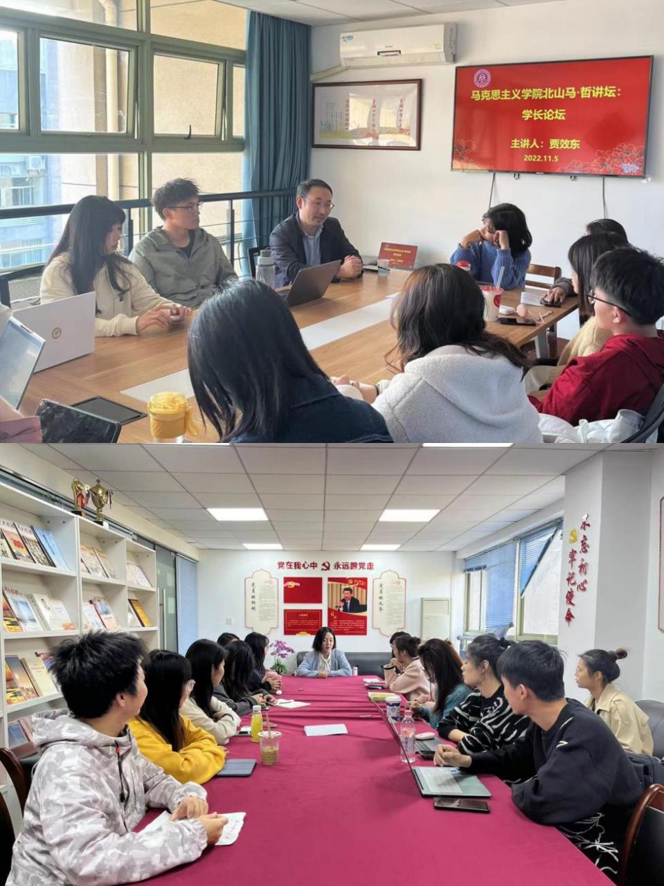 北山马·哲讲坛:学长论坛在学院楼517、504A举行,郭祺佳、贾效东两位校友分别为马克思主义法治思想中国化研究专业、伦理学专业的同学分享自身经历,给予学弟学妹们工作和学业方面的指导。