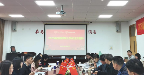 在答辩主席宣布开会后,答辩秘书依照顺序简要介绍了2020级研究生的简况、课业成绩及科研情况。答辩流程分为学生毕业论文PPT展示陈述、答辩老师点评提问、学生回答、答辩老师总结点评四个环节进行。