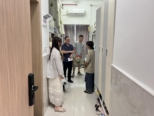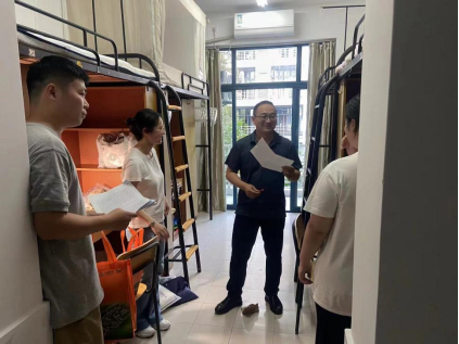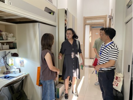 下午5点,新生报到完毕后,学院党委书记刘向前在学院辅导员田意的陪同下,走访了学院各新生寝室,对各位新生的到来表示欢迎,并与各位2023级新生进行亲切交流,询问与了解了学院新生当前住宿情况,并鼓励同学们在未来的研究生学习生活中树立理想、勇于进取、不断进步。