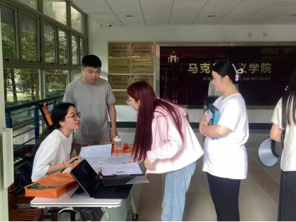 下午3点,在学院楼一楼,学院辅导员田意与学院志愿者们一起为新生们办理入学报到手续,进一步核验身份、收取材料、分发新生入学资料,确保各位新生顺利完成报到工作。