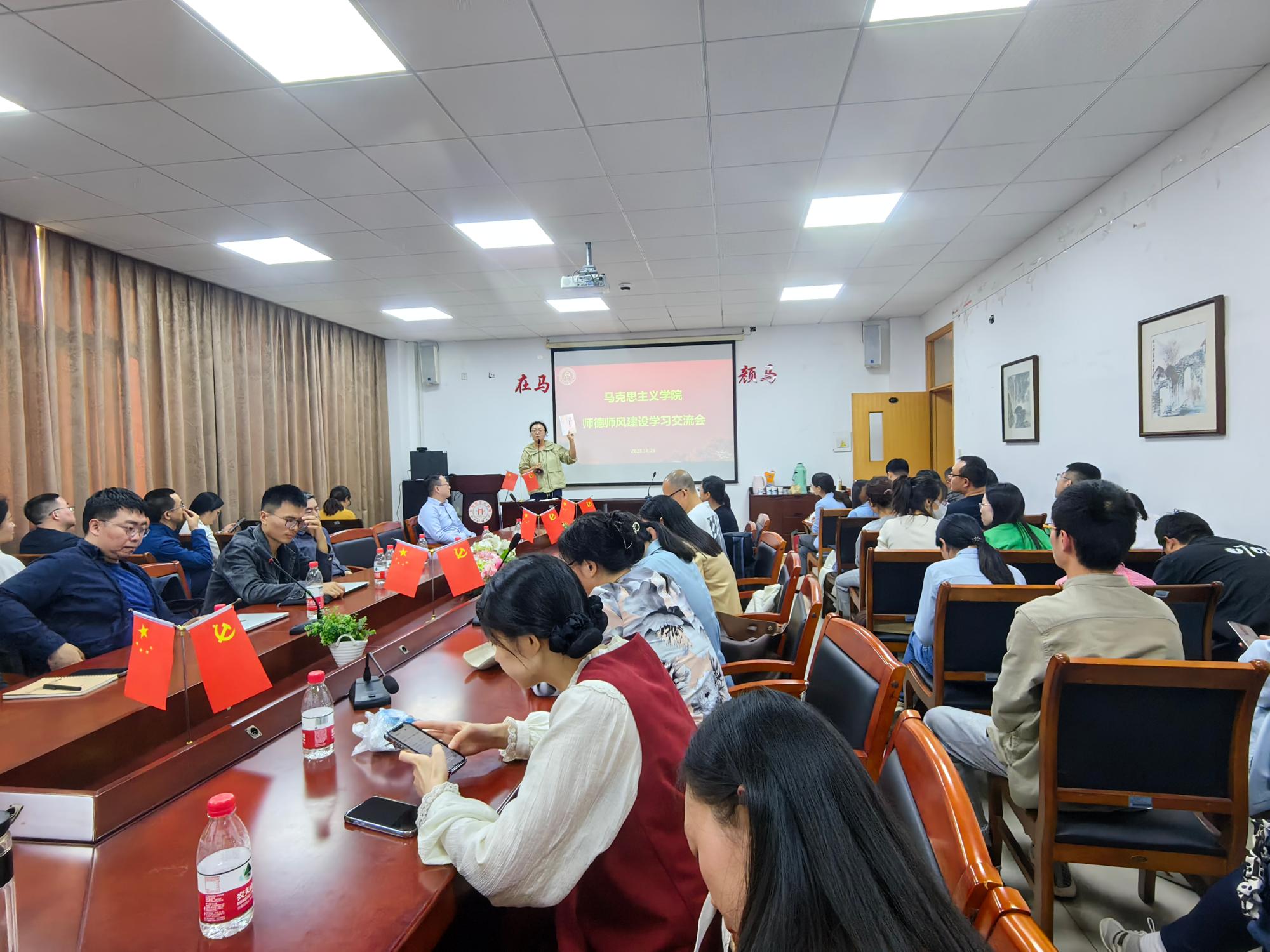 开展师德师风建设学习交流会,会议由学院党委书记刘向前主持,学院纪委书记、副院长邢雁欣领学。