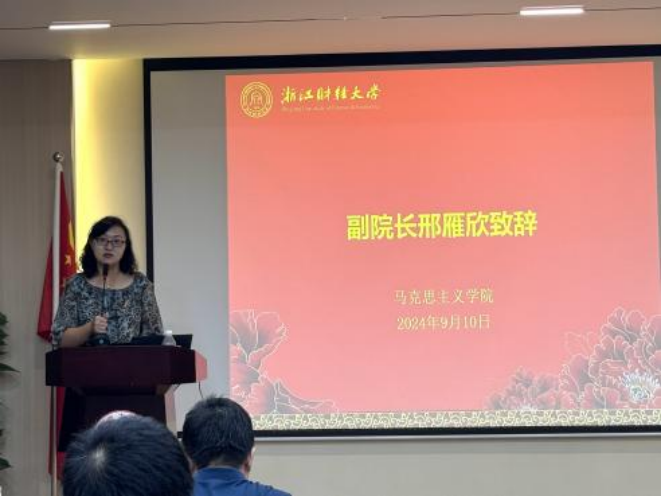 邢雁欣副院长在会议的尾声发表了致辞。她详细介绍了学院的历史底蕴、学科特色、实践基地、工作室、研究中心等,并对学院师生近年来在学术研究、创新竞赛、社会服务等领域取得的成就进行了回顾。她以“不积跬步无以至千里”的古语作为结束语,勉励在座的每一位师生。最后2024级新生与各自导师进行了深入的互动交流,为会议画上了圆满的句号。