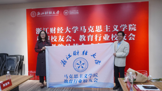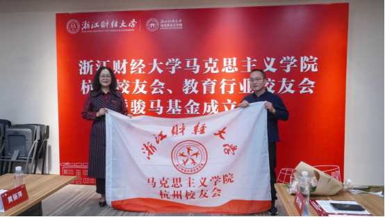 随后,郑亚莉副校长为马院杭州校友会、马院教育行业校友会成立进行授旗,并与学院领导、校友代表为“骏马基金”揭幕,这标志着马院贯彻落实“校友名校”战略进入了全新的阶段。