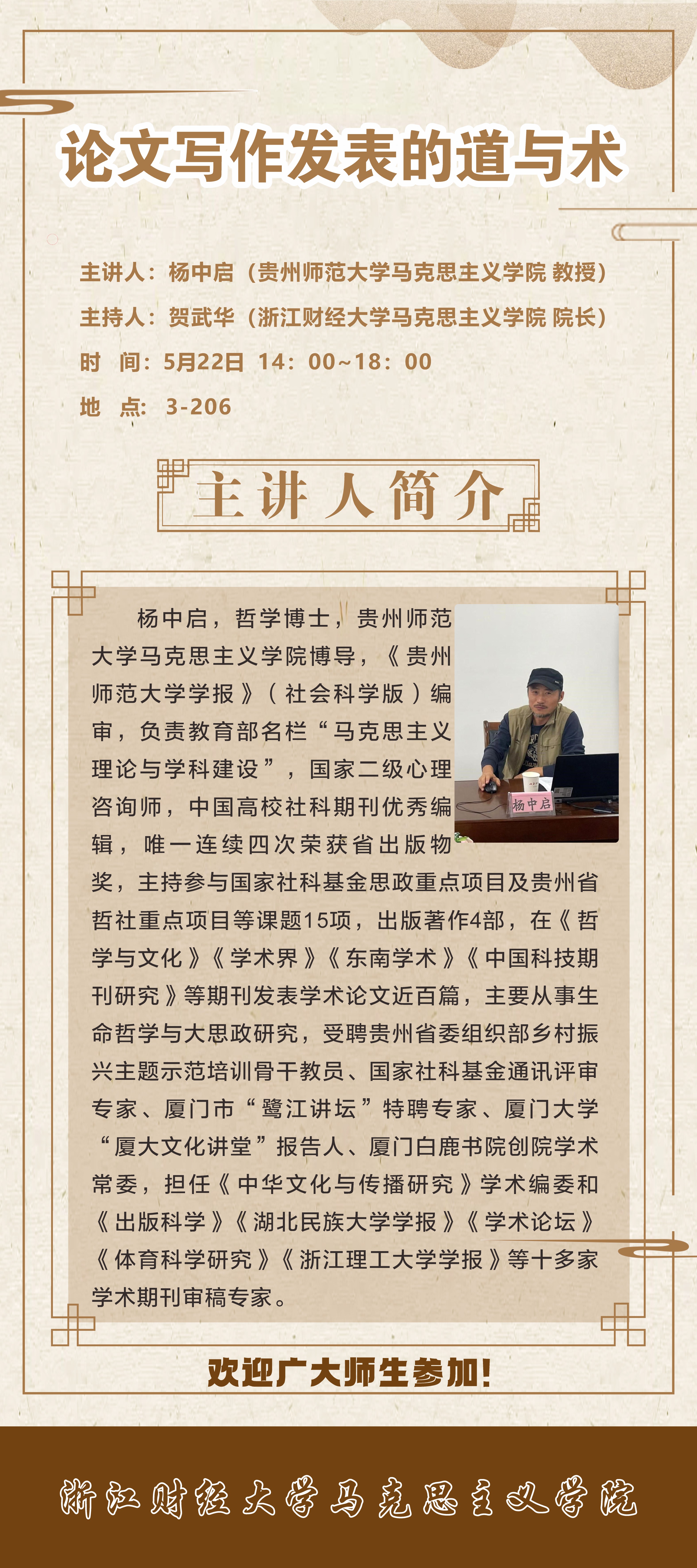 关于举办“ 论文写作发表的道与术”学术讲座的通知