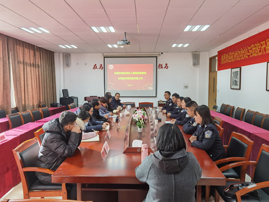 教工第一党支部与中共杭州出入境边防检查站执勤四队党支部开展党建共建工作。一楼一凤