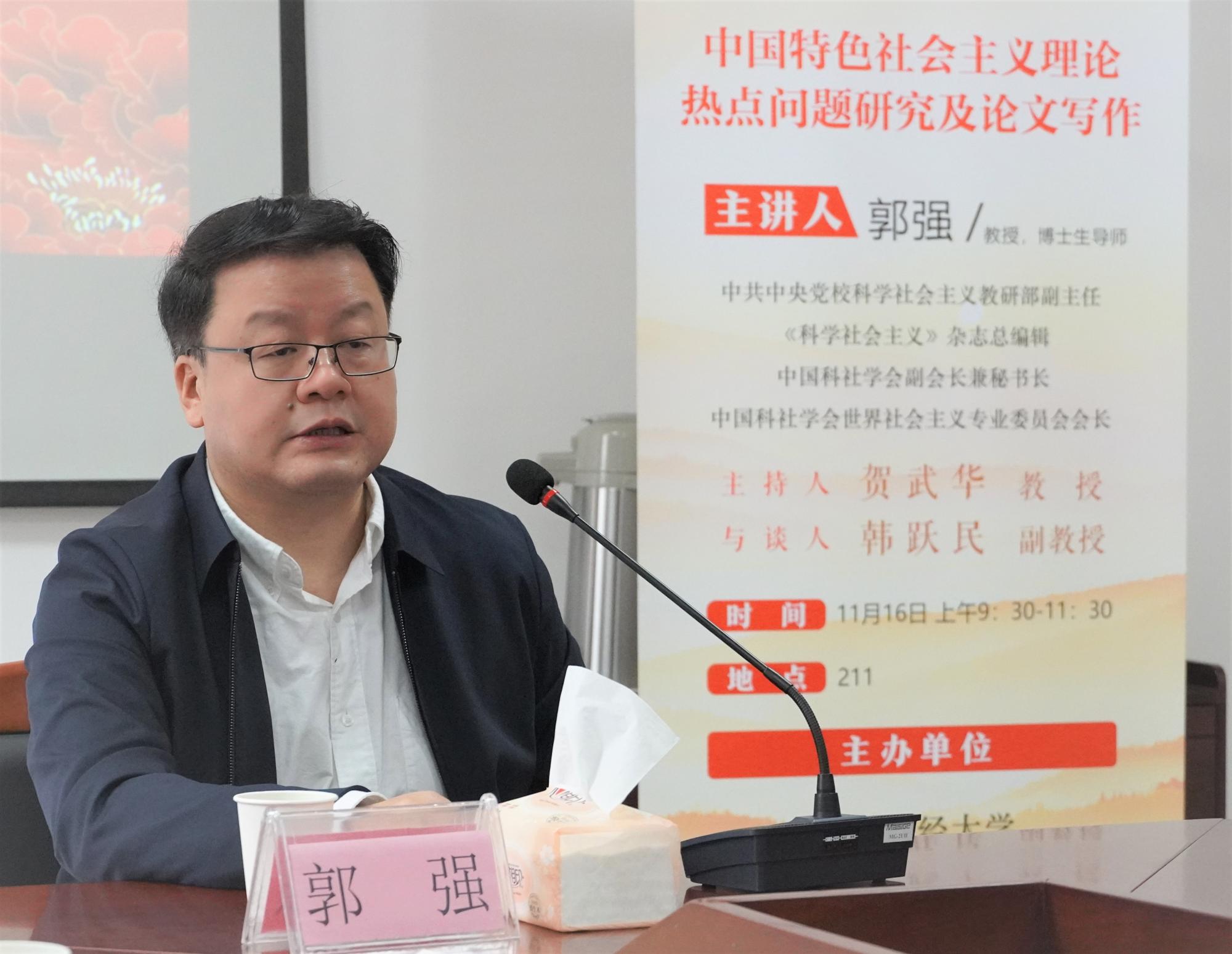 11月16日上午,《科学社会主义》杂志总编辑,中共中央党校郭强教授为马克思主义学院师生作题为《中国特色社会主义理论热点问题研究及论文写作》的学术论坛。此次论坛在一楼一凤