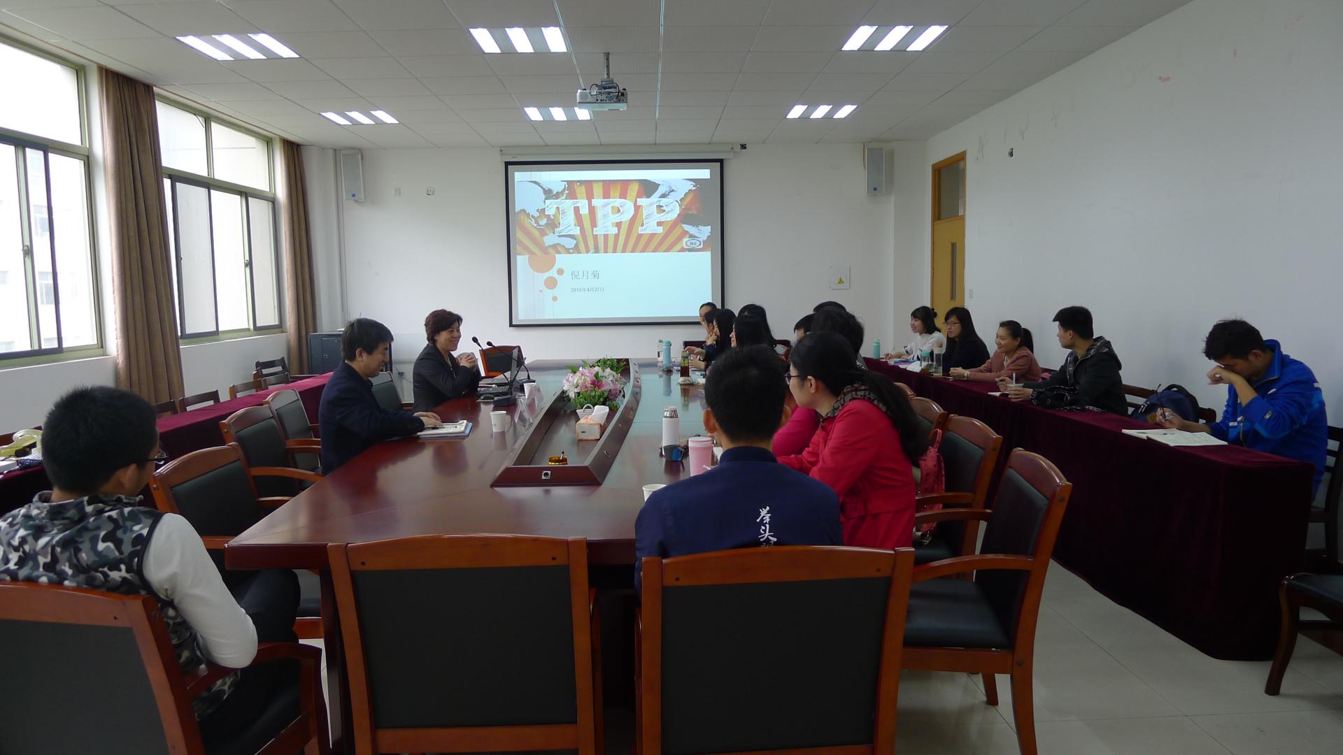讲学。倪月菊研究员以“跨太平洋伙伴关系协定”(Trans-Pacific Partnership Agreement ,TPP)为主题,凭借丰富的数据、广阔的视野为马院的全体研究生奉上了一场高规格的精神大餐。