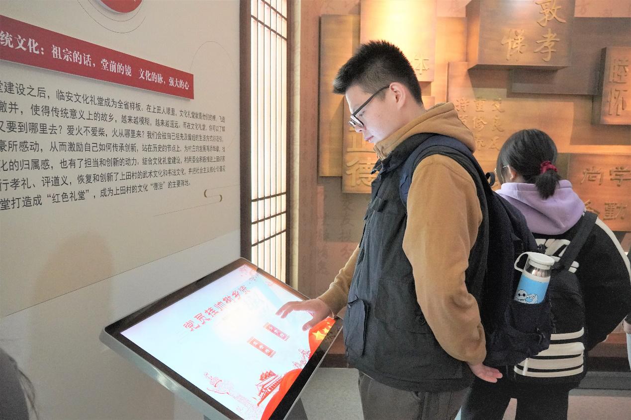 可以说,上田村15年的发展历程就是新中国成立后站起来富起来强起来历程的缩影,00后们在实地参观感受这一惊人变化的同时,不禁发问:上田村的基层社会治理究竟有怎样的秘密?答案就是党建引领下“三治融合”模式。在上田村,受钱王文化的熏陶,村民素来喜爱习武弄墨,依此创建“茶香竹海,文武上田”文化品牌,组建村级文艺队、书法协会、国术团、志愿者服务队等社会组织,举办启蒙礼、新人礼,借助上田LOGO、村训、村歌等载体以文化人,凝聚了人心,令乡村面貌焕然一新。此外,上田村严格施行依法自治,选举公开、公平,重大事项决策不搞“一言堂”,村务坚持“四民主三公开”,上田招牌项目“微法庭”通过“互联网+综合法律服务”,建立完善线上线下解纷渠道,打通司法服务“最后一公里”,让村民足不出户,就能享受到优质的法律服务。考察发现,上田的蝶变正是源自村庄内生的需求,依托“乡村振兴”这一国家顶层设计,贯彻国家“依法治国”与“以德治国”治国方略的结果。而今,自治、德治、法治“三治融合”治理模式下的上田村村风正、村貌美、村力强,是践行社会主义核心价值观的典范村庄。