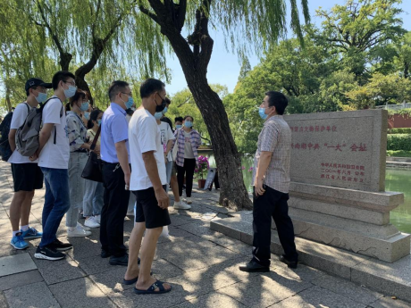 中午12时,同学们搭乘红色游船来到了湖心岛,参观南湖中国共产党“一大”会址,并瞻仰了红船。在参观过程中,华正学教授还向同学们简要介绍了中共一大的会议情况,解读了红船精神的内涵,给全体新生上了一节生动的党课。