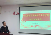 研究生党支部于学院楼211会议室举办以“喜迎二十大、开好党代会、服务示范区、保障亚运会”为主题的微型党课大赛,同志们围绕着学习工作生活中的所感所思所悟,纷纷谈心得、讲收获、话担当。本次活动有研一、研二共计12位选手参与比赛,并由宋维维、黄丽萍、王瑜三位老师担任本次活动的评委。