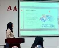 任子钦同志以《讲好亚运故事 展现杭州之美》为题,向大家详细讲解了杭州亚运会的吉祥物设计理念;杨泽慧同志跟大家介绍了我国监察制度的发展历程与重要意义;万雨吟同志以《开好党代会 喜迎二十大》为题号召全体党员把习近平总书记的殷殷嘱托全面落实在中国大地上,自觉做党的创新理论的坚定信仰者和忠实实践者;张晓敏同志则结合自己对杭州的所看所感所想,与大家分享杭州亚运会会徽的重要内涵,向大家展现了杭州的独特魅力。