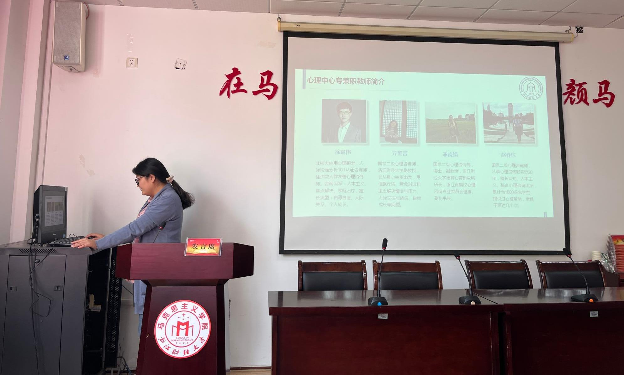 王瑜老师首先向同学们介绍了我校心理中心及一楼一凤