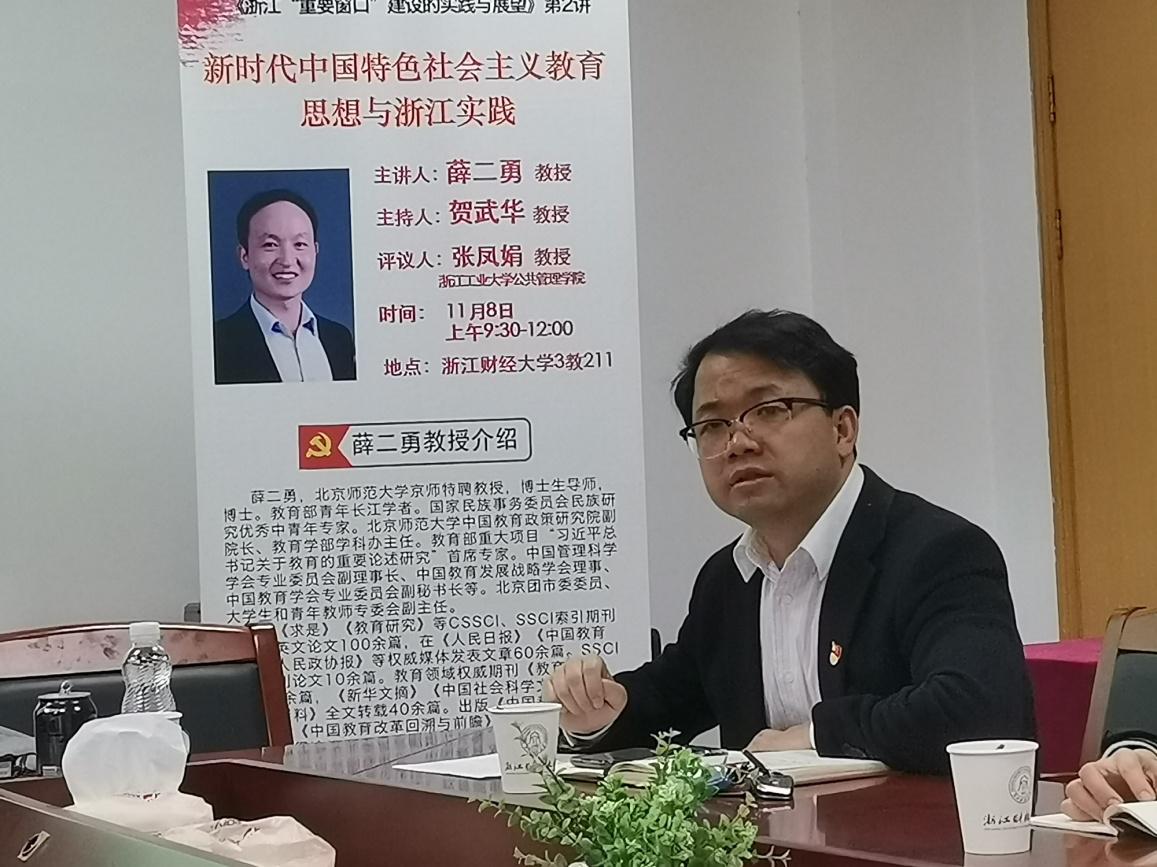 11月8日上午,一楼一凤 在3号楼211会议室举行“新时代中国特色社会主义教育思想与浙江实践”学术交流报告与录制工作。这是一楼一凤 承担省社科联之江青年社科学者学术交流论坛课题的第2讲。本讲主讲嘉宾为教育部长江学者青年学者、北京师范大学中国教育政策研究院副院长、京师特聘教授、博士生导师...
